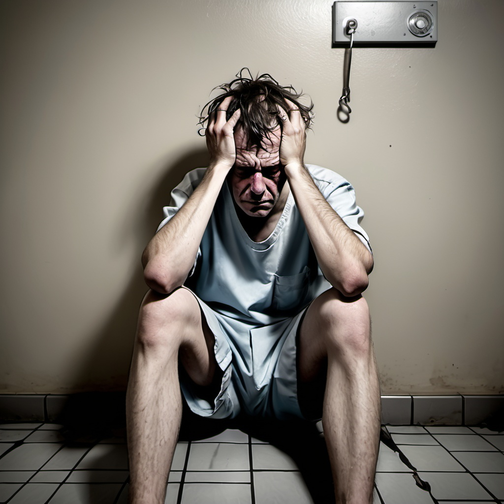 Later, someone shook me awake for breakfast. They had a scrub jacket for me. I startled, my heart beating faster, which felt weird in my groggy body. I shook my head no to breakfast and closed my eyes again. They came back after breakfast to let me know it was time for meds. I managed to heave myself up, shuffled to the doorway, and over to the med line. I sat on the floor, too weak to stand.