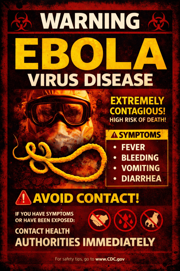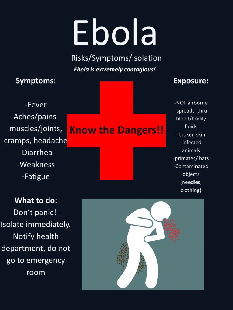 I am about to finish the first of two winter quarters. I made a disaster preparedness plan for Ebola. Ebola is a horrible hemorrhagic virus with up to a 90% kill rate. Decimated west Africa ten years ago. I had to make warning and informational posters.